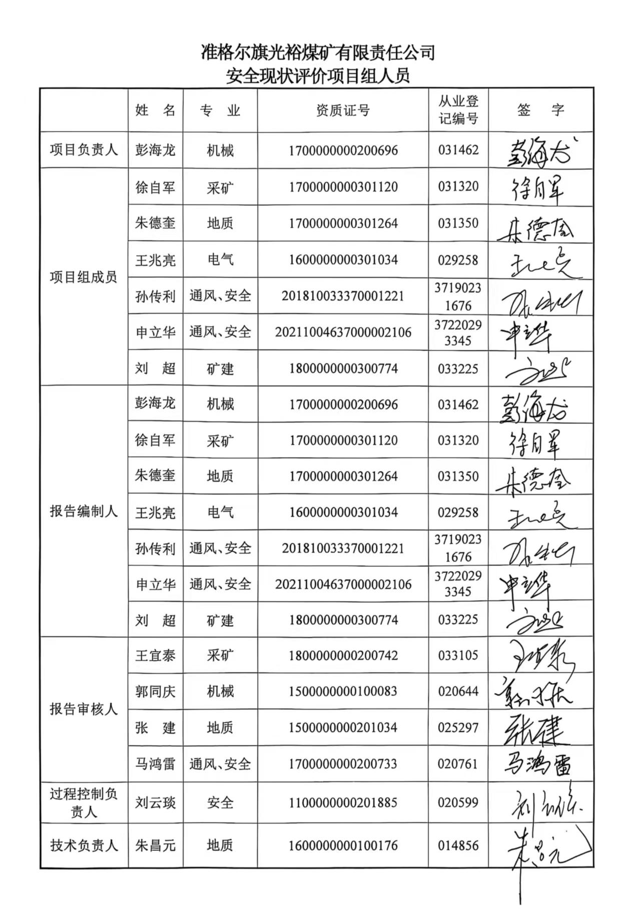 參與安全評價工作的注冊安全工程師: 孫傳利、徐自軍、申立華、朱德奎、彭海龍、王兆亮 | |||||||