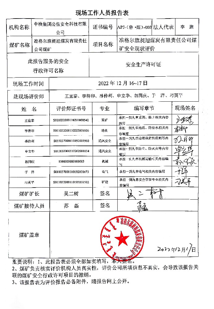 1準(zhǔn)格爾旗昶旭煤炭有限責(zé)任公司煤礦安全現(xiàn)狀評(píng)價(jià)報(bào)告