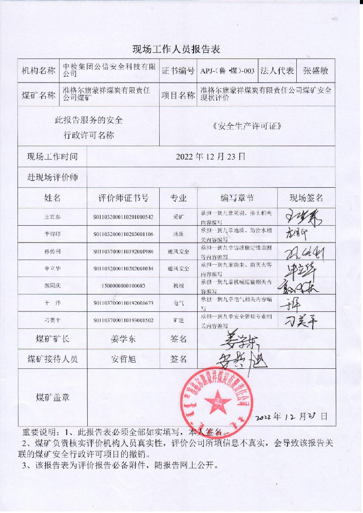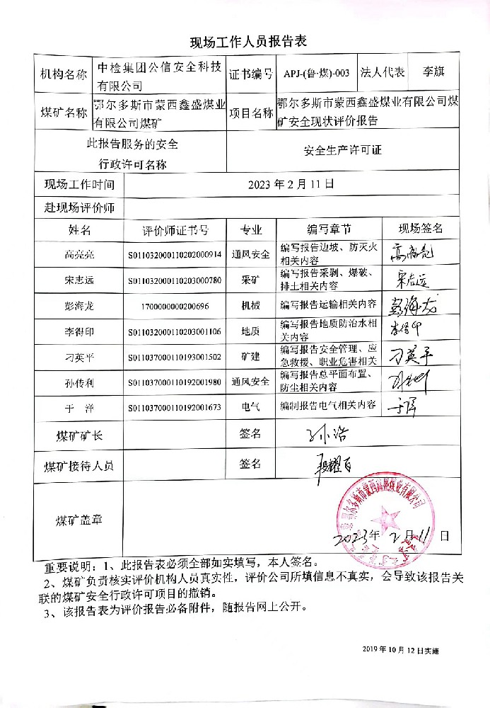 2準(zhǔn)格爾旗蒙祥煤炭有限責(zé)任公司煤礦安全現(xiàn)狀評(píng)價(jià)報(bào)告