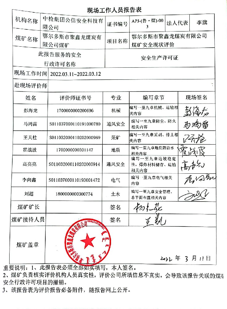 3季度1鄂爾多斯市聚鑫龍煤炭有限公司煤礦安全現(xiàn)狀評價(jià)報(bào)告