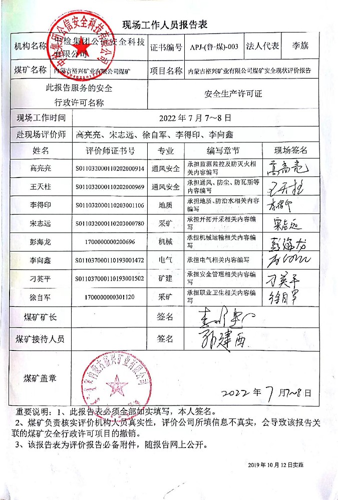 3季度2內(nèi)蒙古裕興礦業(yè)有限公司煤礦安全現(xiàn)狀評價(jià)報(bào)告