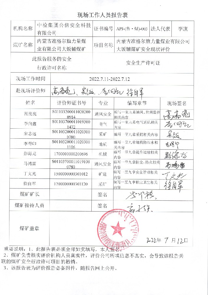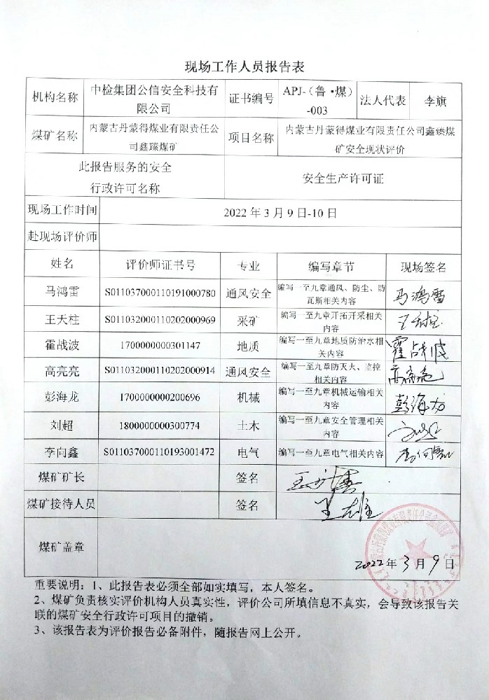 安全評價(jià)報(bào)告網(wǎng)上公開信息表 內(nèi)蒙古鄂爾多斯市 季度