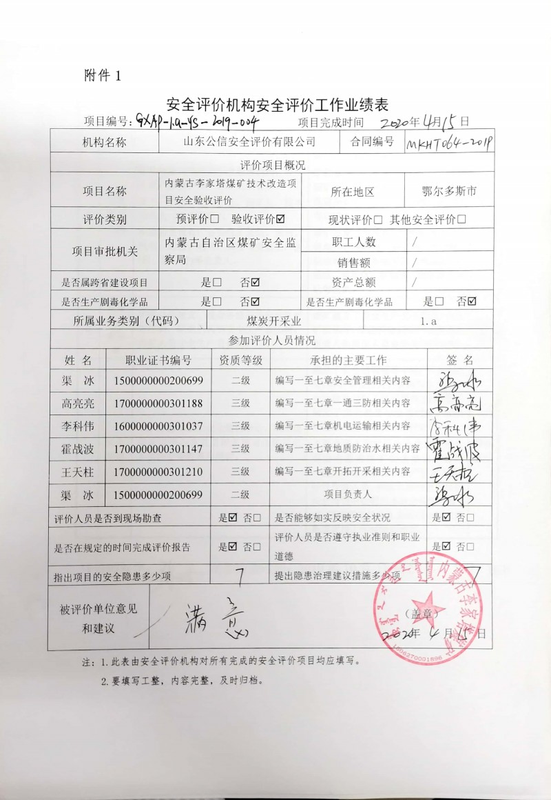 | 到現(xiàn)場(chǎng)開(kāi)展安全評(píng)價(jià)工作的人員、時(shí)間及主要任務(wù): 人員:渠冰、李科偉、王天柱、高亮亮、霍戰(zhàn)波 時(shí)間、任務(wù): 2019年10月11~12日現(xiàn)場(chǎng)調(diào)查;2020年10月21日復(fù)查;2019年10月23日至2019年11月7日編寫修改完善報(bào)告。 |