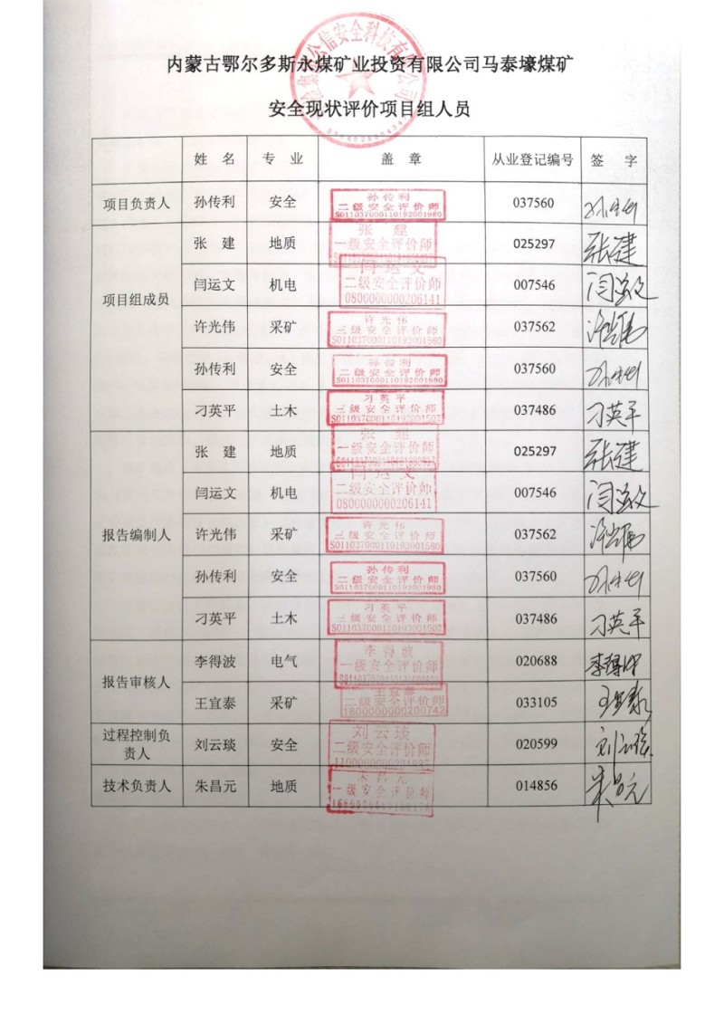 | 評(píng)價(jià)項(xiàng)目名稱 | 內(nèi)蒙古鄂爾多斯永煤礦業(yè)投資有限公司馬泰壕煤礦安全現(xiàn)狀評(píng)價(jià)報(bào)告 | ||||||