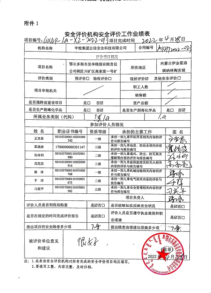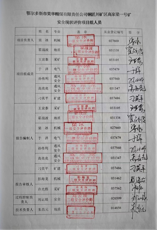 | 評價(jià)項(xiàng)目名稱 | 鄂爾多斯市昊華精煤有限責(zé)任公司銅匠川礦區(qū)高家梁一號礦安全現(xiàn)狀評價(jià)報(bào)告 | ||||||